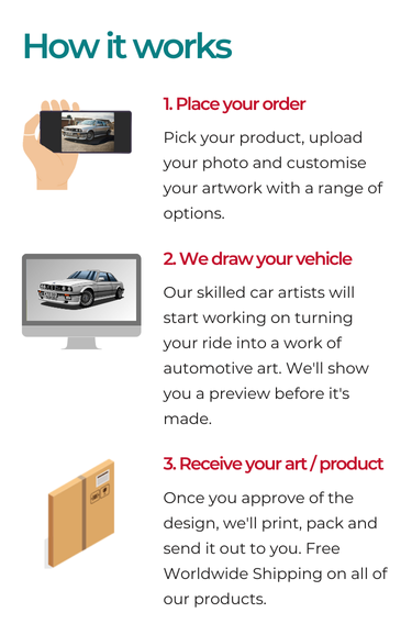 Whether you're looking for a personalised wall art, or a t-shirt to go with your new or pride and joy vehicle, we're sure you'll find a custom gift that you or the person you're gifting to will love.